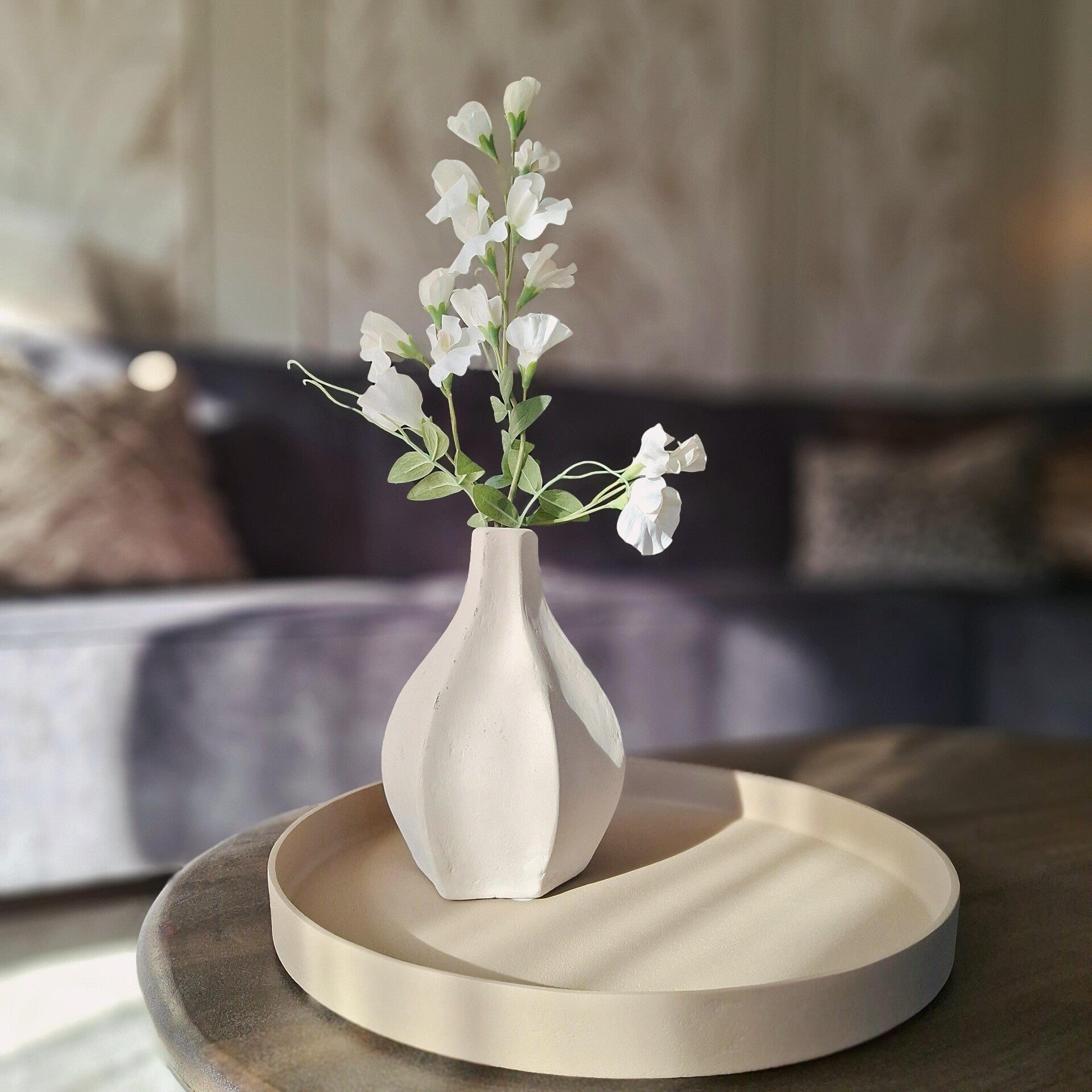 Deze handgemaakte organische vaas is gemaakt van papier-maché en krijt, ambachtelijke kennis en een milieuvriendelijke productie. Deze beige vaas past perfect in een Japandi interieur.