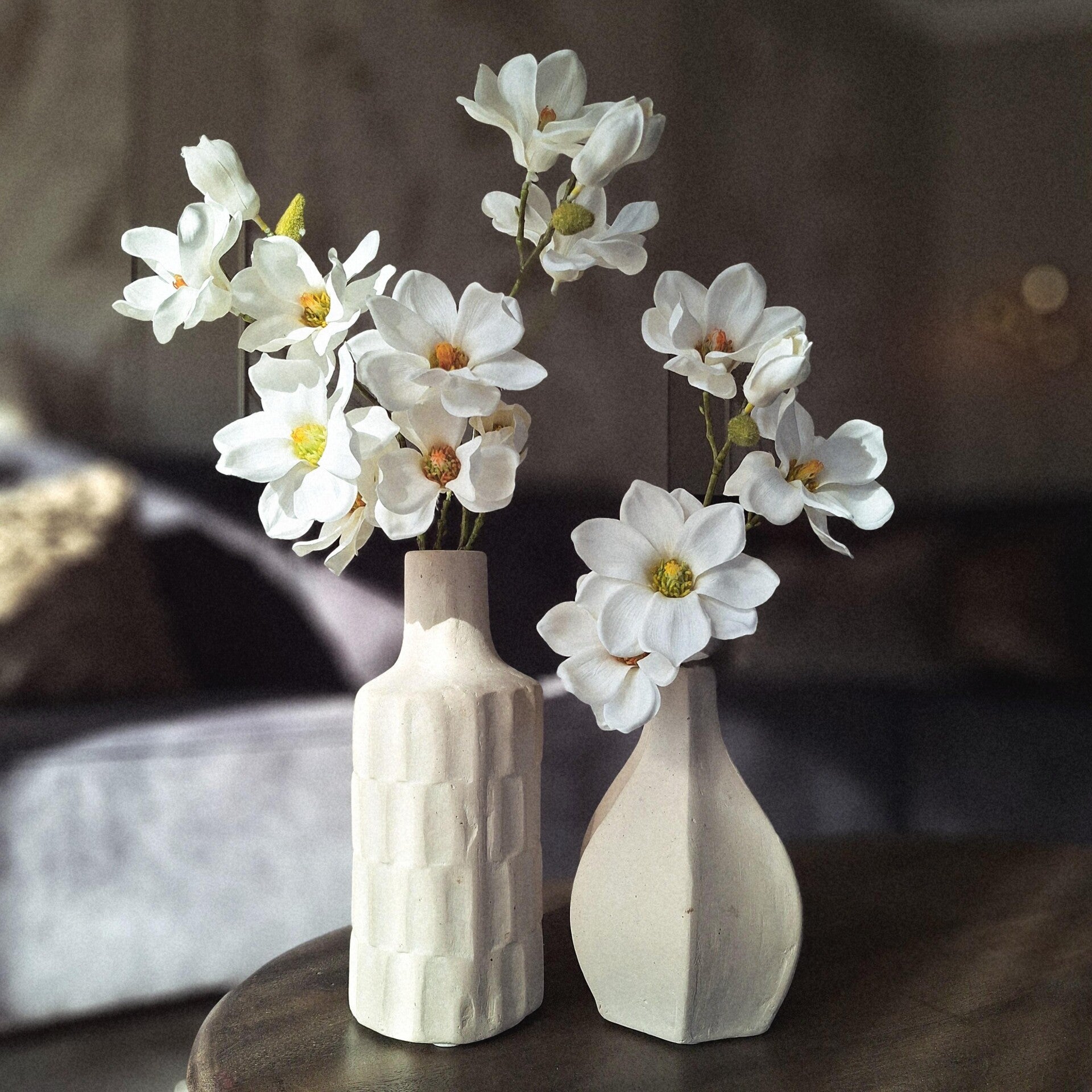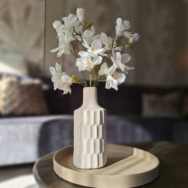 Deze handgemaakte organische vaas is gemaakt van papier-maché en krijt, ambachtelijke kennis en een milieuvriendelijke productie. Deze beige vaas past perfect in een Japandi interieur.