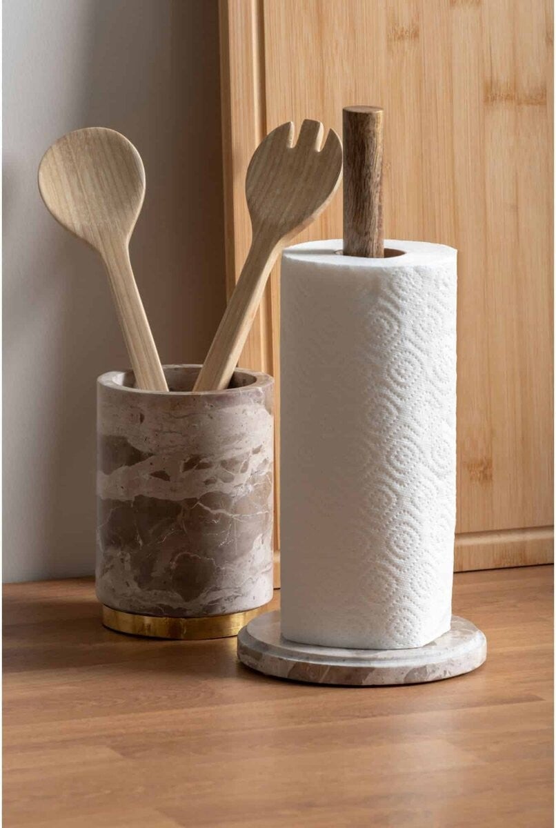 Marmer-liefhebbers opgelet! Zie jij deze marmeren keukengereihouder al shinen in jouw keuken? Het marmer gecombineerd met de gouden voet zorgt voor een chique look in jouw keuken!
