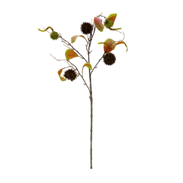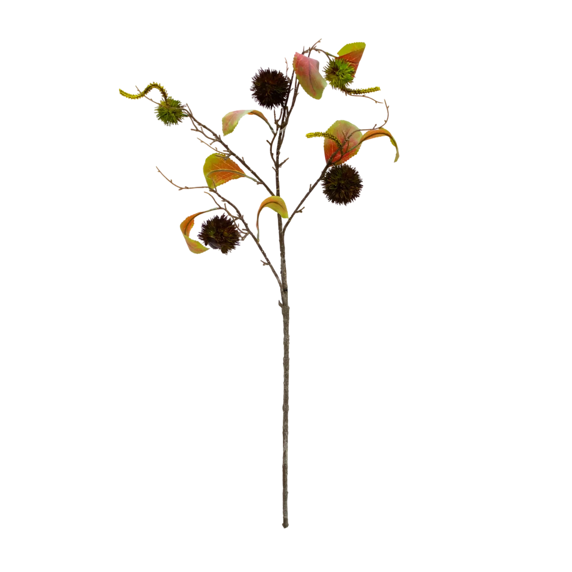 Breng de warme sfeer van de herfst in huis met deze prachtige kunsttak met kastanjes. Dankzij de realistische details en natuurlijke kleuren oogt hij alsof hij zo uit het bos komt. Geef jouw vaas een herfstige look met deze realistische kastanje kunsttak – en geniet elke herfst weer opnieuw van deze onderhoudsvrije takken.