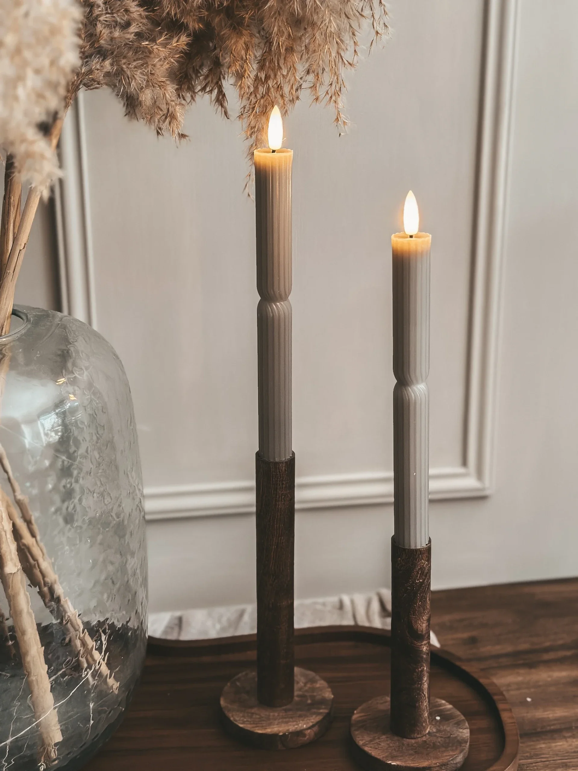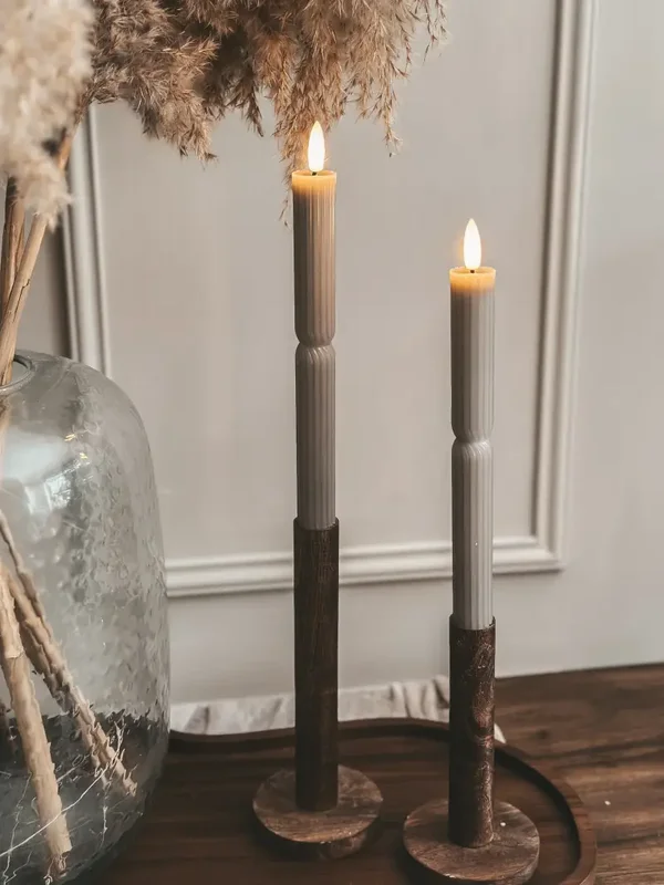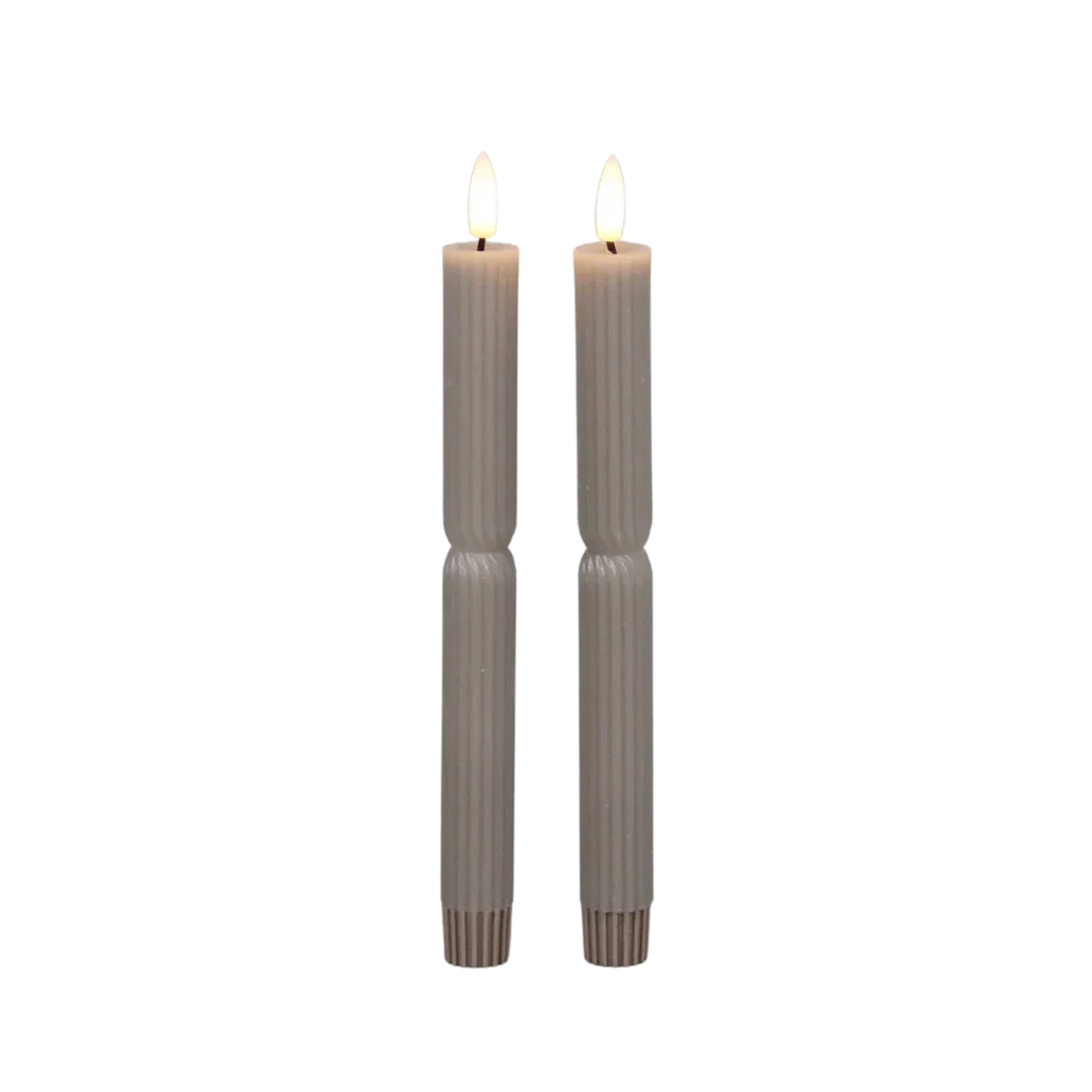 Prachtige realistische LED dinerkaarsen in een warme taupe kleur in uniek ribbel design. Ga voor stijl en gemak met deze handige dinerkaarsen op timer.