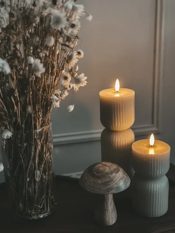 Prachtige realistische LED stompkaars in een warme beige kleur met uniek ribbel design. Ga voor stijl en gemak met deze handige ribbel kaars op timer.
