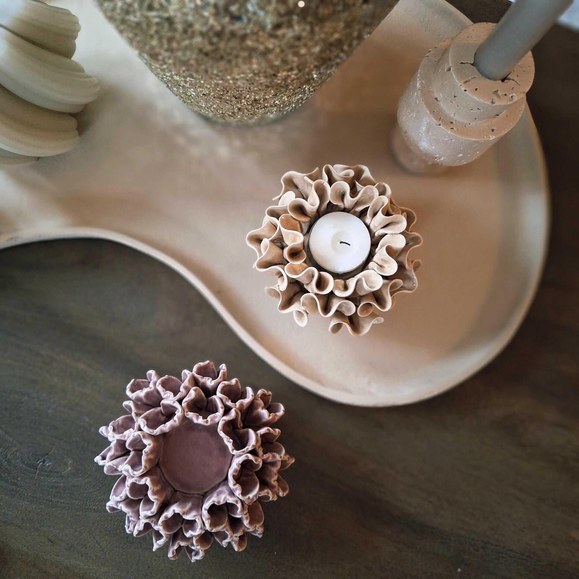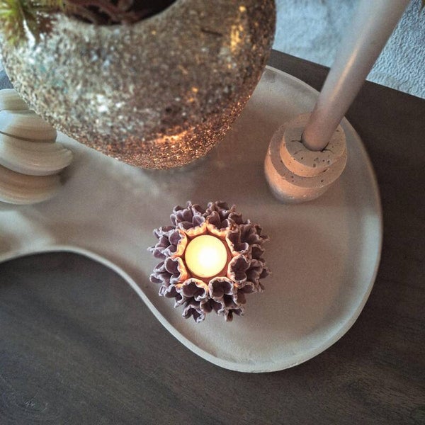 Lila waxinehouder — met een uniek buds design — geeft je interieur een zachte, dromerige sfeer. De lila kleurige kaarshouder heeft een unieke uitstraling en brengt een subtiel, organisch accent in elk interieur. De zachte, warme tint wordt versterkt door het speelse patroon. Warm, sfeervol en verfijnd — geef je woonkamer een tikkeltje kleur met deze leuke waxinelichthouder!