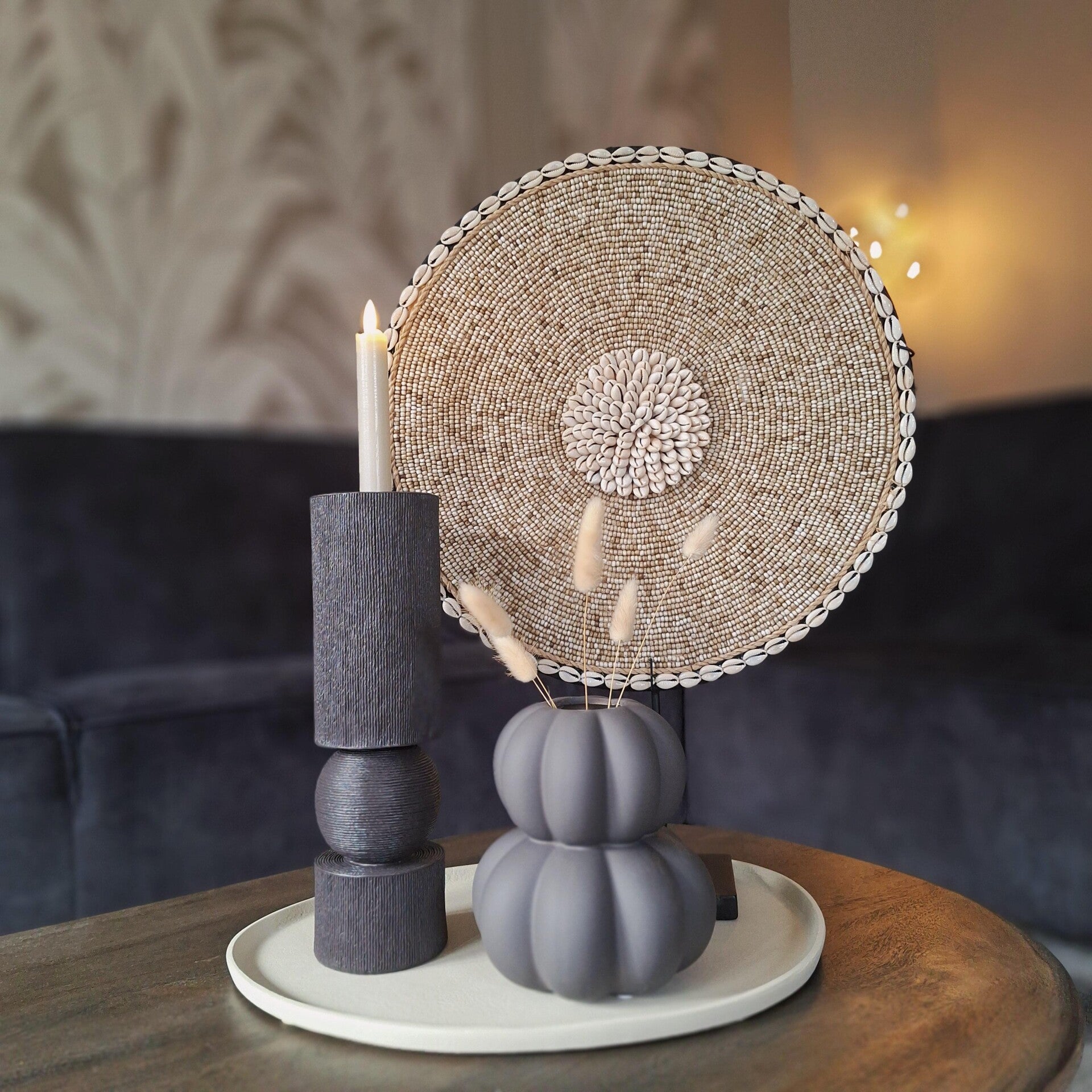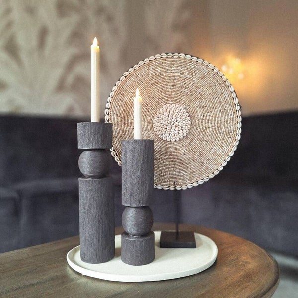 Deze chocoladebruine kaarsenhouder – gemaakt van polystone – zorgt voor een chique en steervolle uitstraling. De bruine kandelaar heeft een unieke en rustieke structuur.